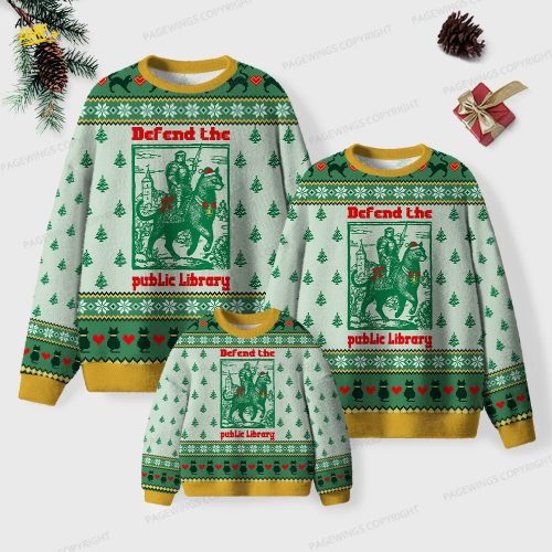 Defend The Public Library Unisex Ugly Knit Christmas Sweater