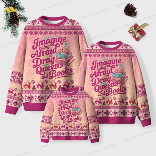 Imagine Being Afraid Of Drag Queens And Books Unisex Ugly Knit Christmas Sweater