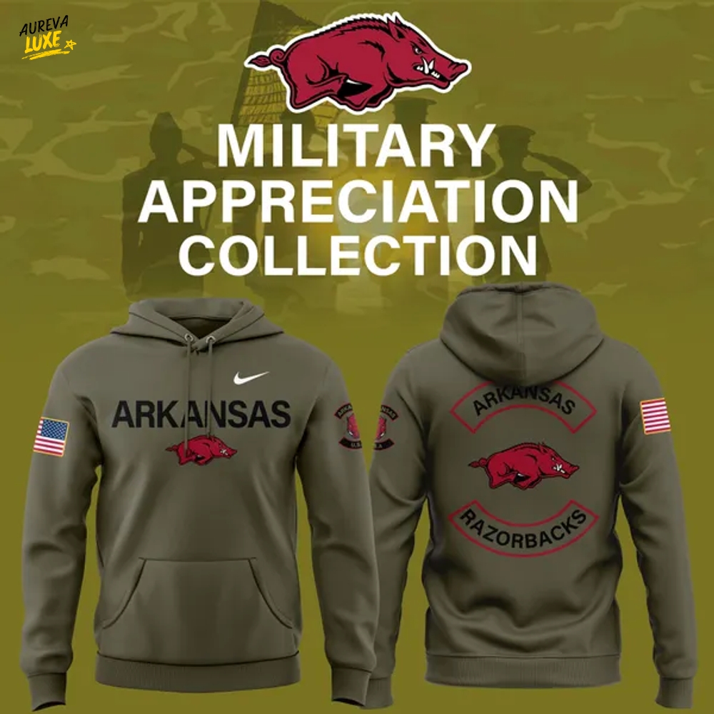 Show your support with the 02.Arkansas Razorbacks football 2025 Military Appreciation hoodie. This stylish and comfortable hoodie not only celebrates the incredible dedication of our military but also showcases your passion for Razorbacks football. Made with high-quality materials, it offers warmth and durability for every game day. Stand out in the crowd and honor our heroes with the 02.Arkansas Razorbacks football 2025 Military Appreciation hoodie.