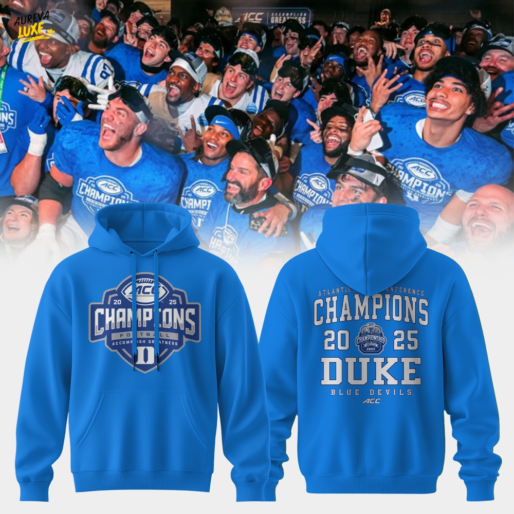 Celebrate the triumphant spirit of DUKE FOOTBALL – ACC CHAMPIONS 2025 with our exclusive hoodie. Crafted for comfort and style, this hoodie proudly displays your support for Duke’s remarkable achievement in the Atlantic Coast Conference. It’s perfect for game days, casual outings, or lounging at home. Don’t miss your chance to own a piece of Duke pride—grab your DUKE FOOTBALL – ACC CHAMPIONS 2025 hoodie today!