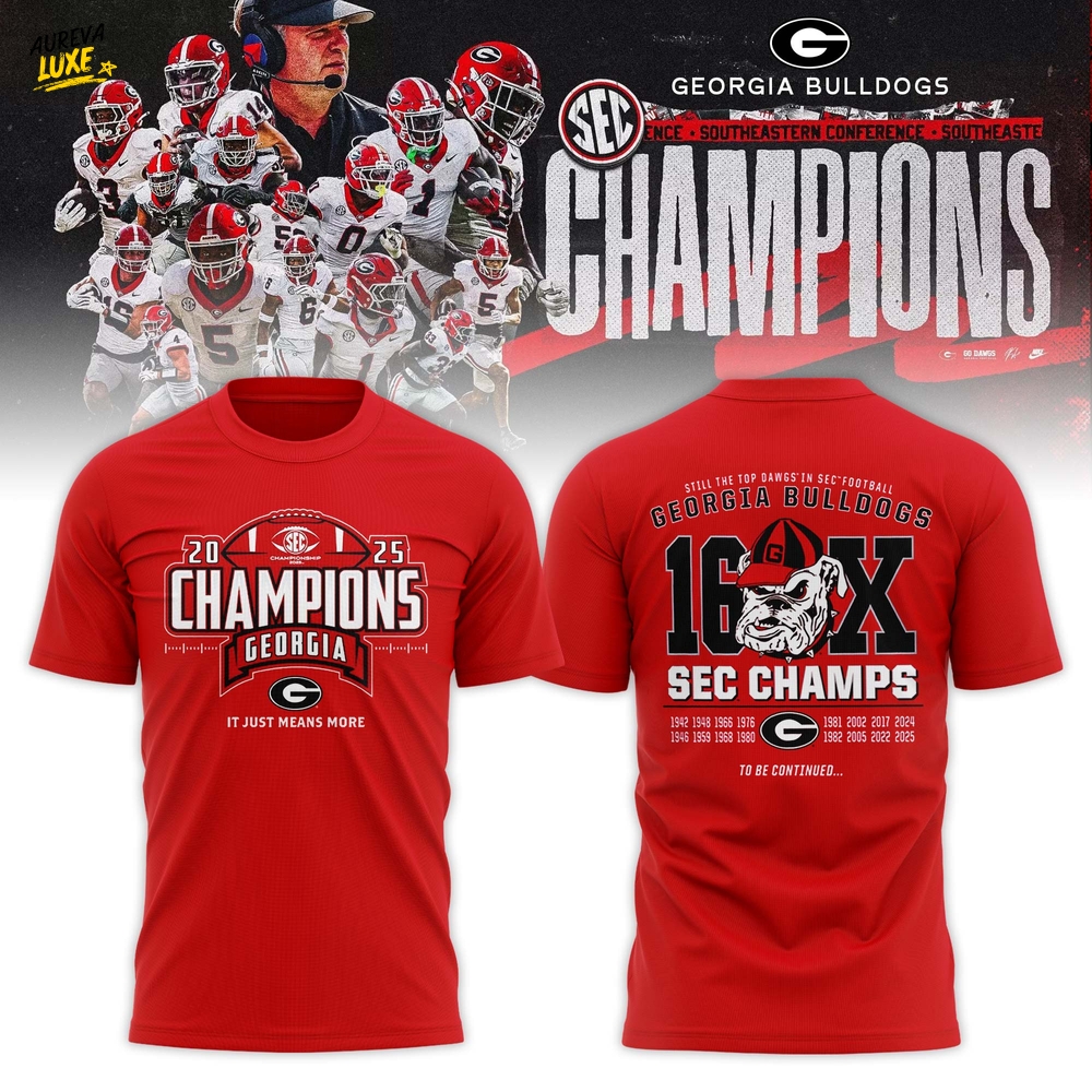 Celebrate the Georgia Bulldogs’ triumphant victory with the exclusive Georgia Bulldogs 2025 SEC Football Champions Locker Room T-shirt. This stylish tee showcases your pride in the Bulldogs while offering unmatched comfort and quality. Perfect for game days or casual outings, it’s a must-have for die-hard fans. Don’t miss out; wear your championship spirit with the Georgia Bulldogs 2025 SEC Football Champions Locker Room T-shirt!