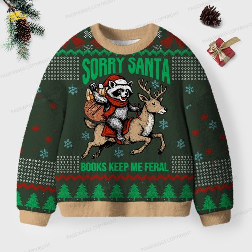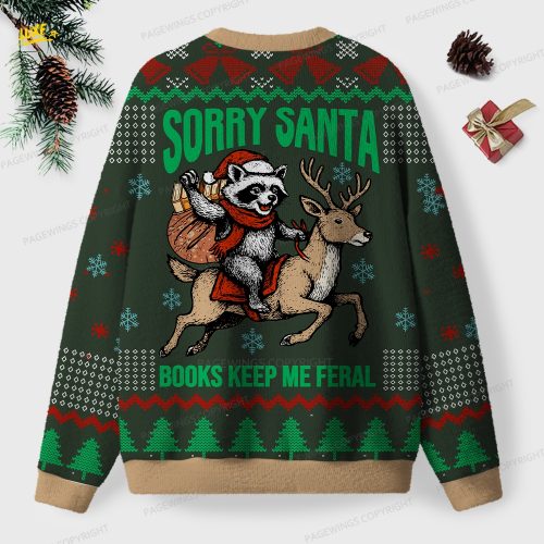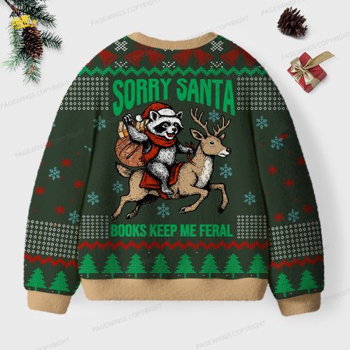 Sorry Santa Books Keep Me Feral Unisex Ugly Knit Christmas Sweater