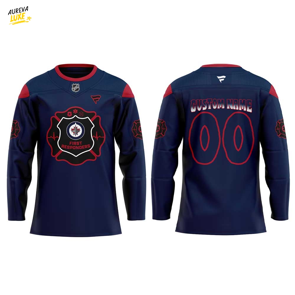 W Jets First Responders Night 2026 Blue Hockey Jersey Custom Name, Number