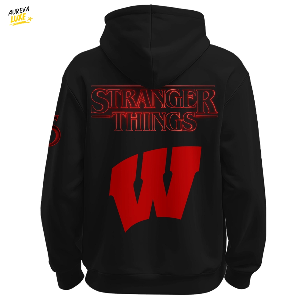 Wisconsin x Stranger Things hoodie with a bold red–black design